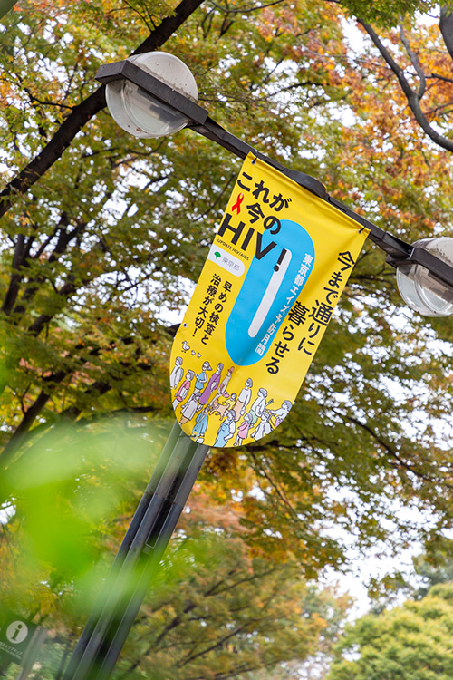 HIV最新情報を掲げた街頭フラッグが新宿を彩ります! 都庁前通りでは11/15〜12/15、新宿二丁目仲通りは11/25〜12/2(予定)に掲出する予定です。