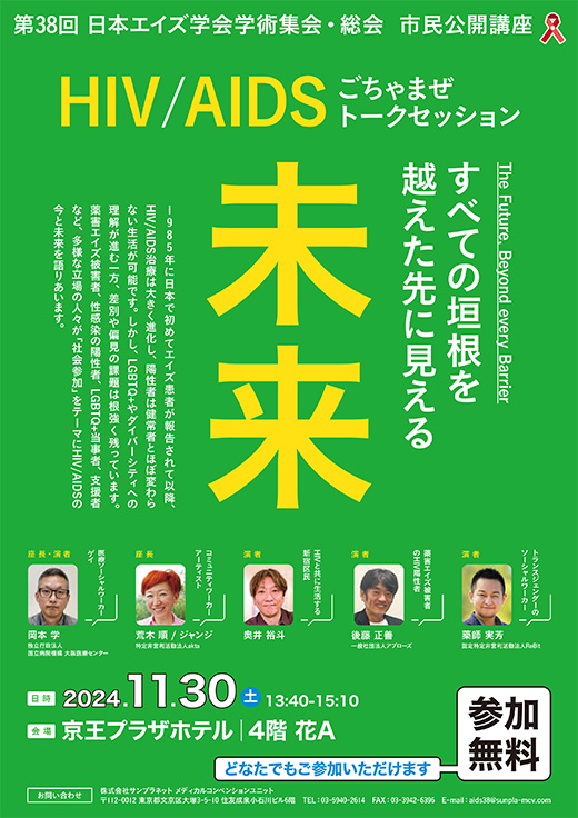 >>第38回日本エイズ学会学術集会・総会のウェブサイトはこちら